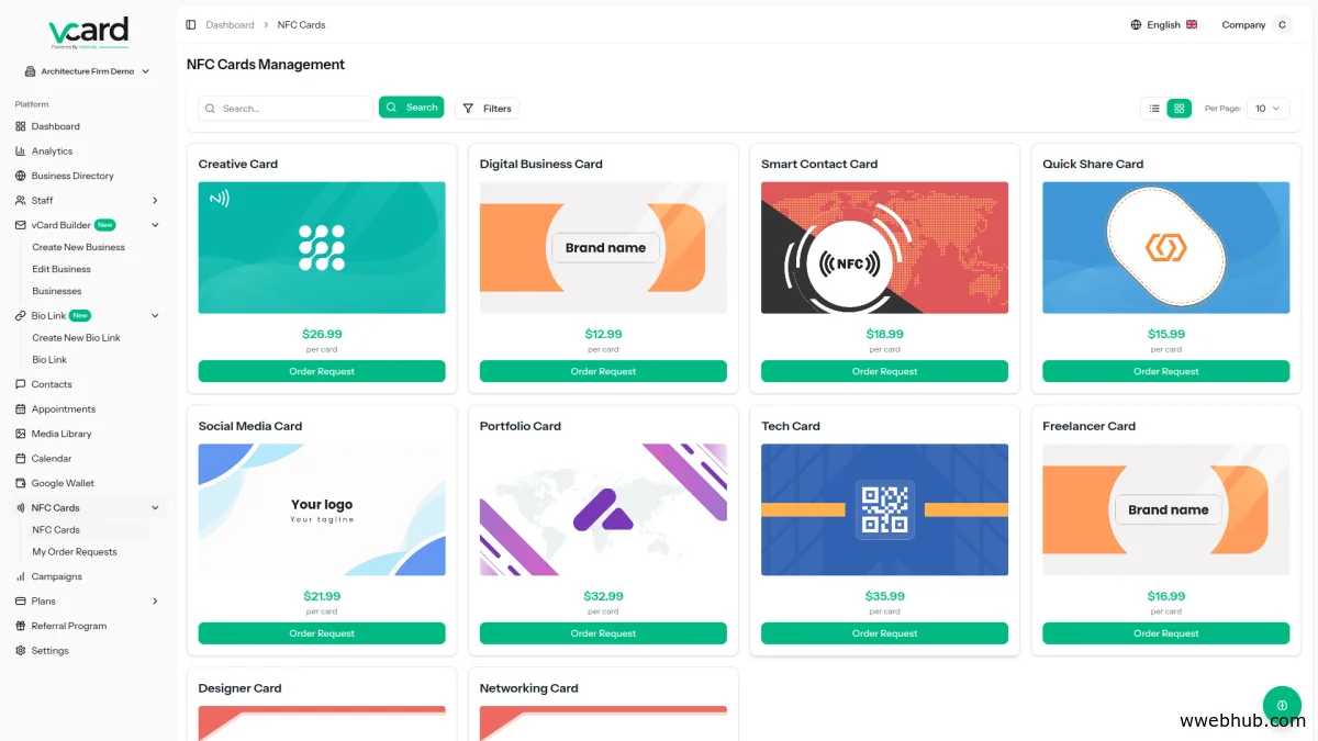 Demo: https://codecanyon.net/item/infyvcardssaas-multi-user-business-card-builder-saas-vcards/35815965